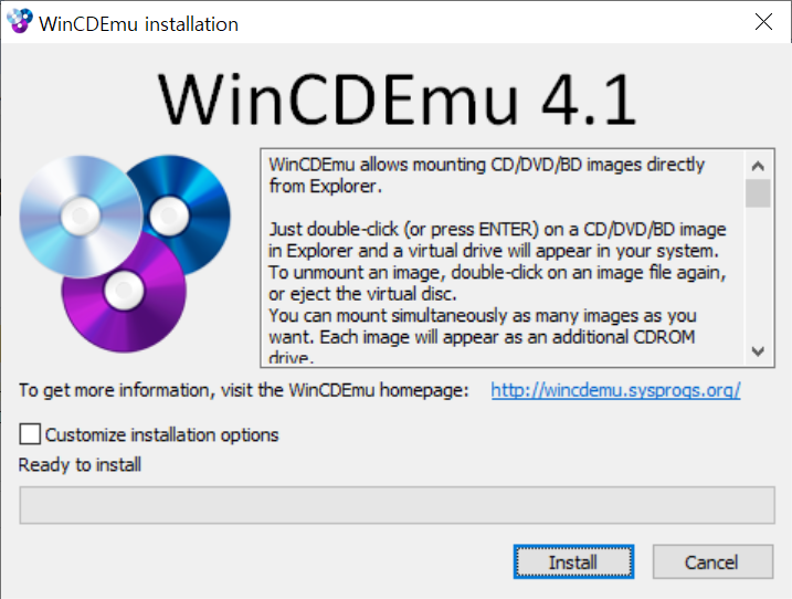 WinCDEmu는 무료로 가상 CD/DVD 드라이브를 마운트하여 사용할 수 있게 해주는 프로그램입니다.